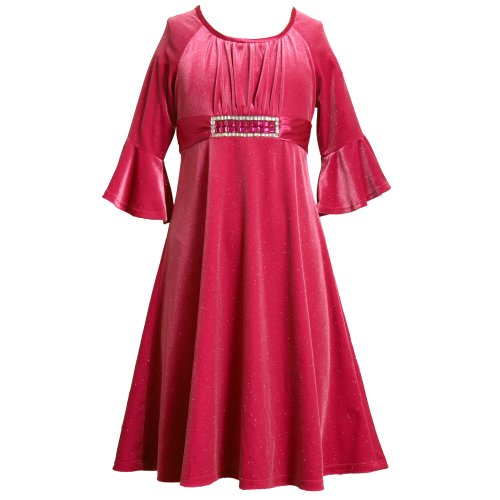 Bonnie Jean Girls 7-16 FUCHSIA-PINK GLITTER VELVET RHINESTONE WAIST Special Occasion Christmas Holiday Pageant Party Dress Review