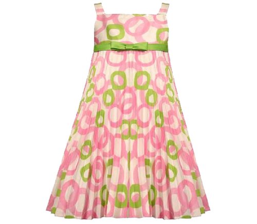 Bonnie Jean Little Girls 4-6X ROSE-PINK LIME-GREEN CIRCLE SUNBURST PLEAT SHANTUNG Special Occasion Wedding Flower Girl Easter Birthday Party Dress Review