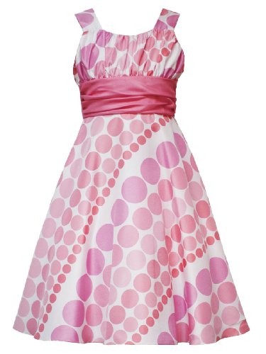 Beautiful CORAL-PINK & IVORY SHANTUNG dress features sleeveless DOT-PRINT GATHERED BODICE with SOLID CORAL-PINK SHIRRED BAND TRIM at the waist. Fully lined skirt features DIAGONAL GRADED-DOT PRINT with attached ruffle crinoline underskirt for added fullness and back zip closure with BOW TIE SASH IN BACK for perfect fit. Machine washable. Imported. Of polyester - Lining of polyester/nylon - Exclusive of trim/decoration. Matching/Coordinating sister sizes 7 - 18.5 available, search for style(s): RRE-25040. More girls party dresses available, search for: " rre-girl-party-dress " Read more...