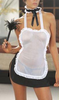 Mesh sleepwear apron halter dress and matching g-string. Includes matching neckband and feather duster. (4 piece set) Size: O/S Color: COSTUME Made in: China Material: 95% Polyester 5% Spandex Read more...