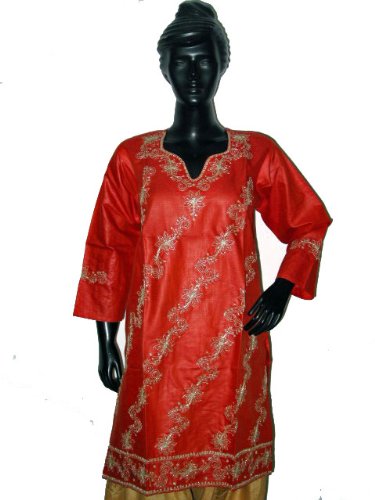Christmas Sale Red Tunic Tops Designer Silk Tunic Kurti Designer Party Dresses Hand Embroidery Size L Review