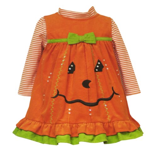 Rare Editions Baby 3M-9M 2-Piece ORANGE GREEN SEQUIN Pumpkin Face BOW FRONT CORDUROY Jumper Halloween Party Dress Set Review