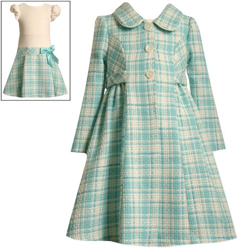 Bonnie Jean Little Girls 4-6X 2-Piece AQUA-BLUE IVORY PLAID BOUCLE BUTTON FRONT Special Occasion Easter Party Dress/Coat Set Review