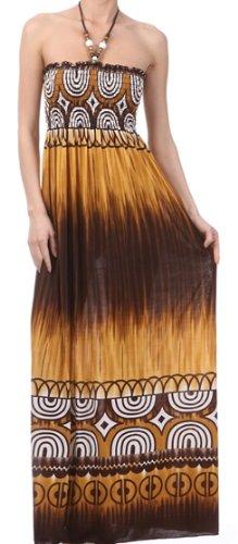 Geometric Arches Two Tone Graphic Print Beaded Halter Smocked Bodice Long / Maxi Dress ( 2 Colors ) Review