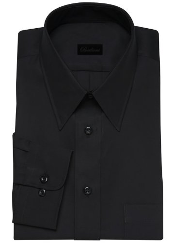 Italian Modern Men's Cotton Business Dress Shirt Wrinkle Free Poplin Long Sleeve Convertible Cuffs Black Review