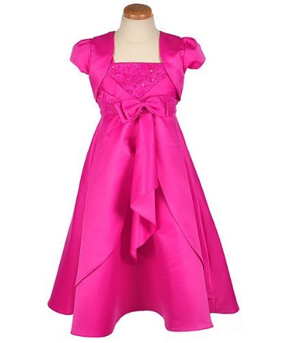 If she needs to stand out from the crowd at that special event, consider this sophisticated look from Kiki! It features a pleated and beaded bodice, and a removable bow pin at the waist. A zipper and tie in back offer a perfect fit; a tulle lining gives the A-line skirt its voluminous shape. Comes with a cropped bolero. 100% Polyester Machine Wash Cold Made in USA Read more...