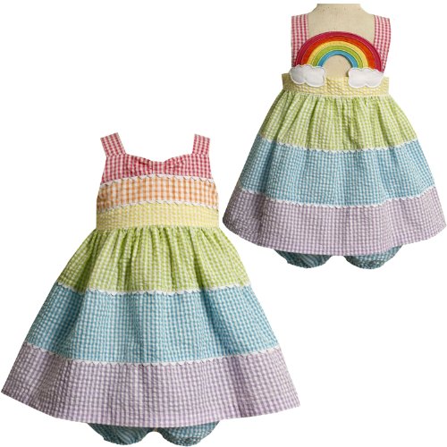 Bonnie Jean Baby/Infant Girls 12M-24M 2-Piece MULTI COLORBLOCK RAINBOW BACK SEERSUCKER Spring Summer Girl Party Dress Review