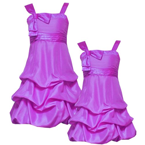 Beautiful PURPLE PUCKERED BUBBLE DRESS features sleeveless bodice with square-neckline and SATIN SHOULDER STRAPS with BOW ACCENT on one shoulder plus PLEATED SATIN CUMMERBUND BAND at the waist. Fully lined, knee-length BUBBLE SKIRT features PUCKERED/PICK-UP DETAILS and back zip closure with SATIN BOW TIE SASH IN BACK for perfect fit. Machine washable. Imported (El Salvador). Of polyester - Lining of polyester - Exclusive of trim/decoration. Matching/Coordinating sister styles available in sizes 4-16, search for style(s): RRE-45321. More baby & girl party dresses available, search for: " rre-girl-party-dress " Read more...