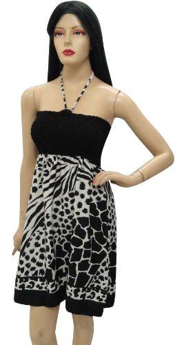 Elegant Printed Tube Dress... Adjustable tie around neck Straps for perfect fitting .. along with elastic tube top & Printed Dress/ Skirt gives the most sexy look !! Best as Party Dress... best dress for your Cruise or on Beach... this dress will fits the best upto Bust 38" ... Likre , Color: Black !! TM Read more...