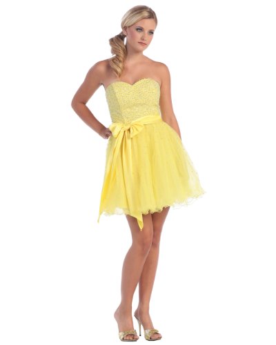 Free Shipping Ladies Yellow Beaded Strapless Cocktail Dress @ Amazon.com
