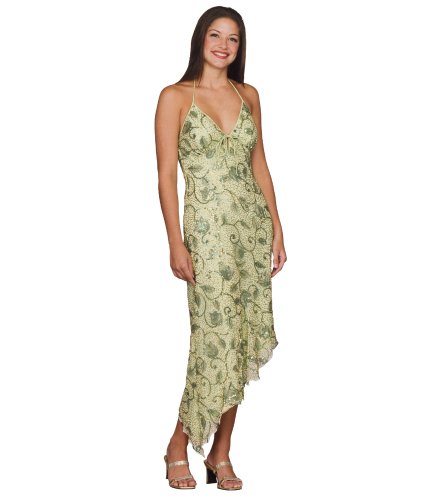 Sensational cocktail dress in pure silk print. Halter neck with sexy front keyhole. Floral beading detail adds glamour and shine. Read more...