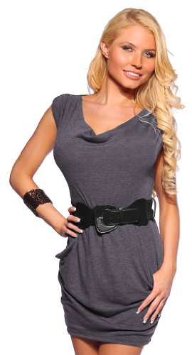 Be fashionably in style when you wear this must have item as you stroll down your favorite places in town. You will surely have all eyes on you as you look like a celebrity in this season's hottest item! This dress features a super soft knit jersey fabric that molds on your body beautifully. The pull over cowl neckline dress allows you to show your great neck, while enhancing your cleavage area. The released pleats on the shoulder of the kimono sleeves, add a detailed and designer look. A gorgeous adjustable and removable wide elastic Brown belt adds a chic look at the low waist, while defining a slim look instantly. Two open side pockets make it easy for you to carry your favorite small needed objects. The back features a scooped neckline, while the short mini length allows you to show off your great legs. Read more...